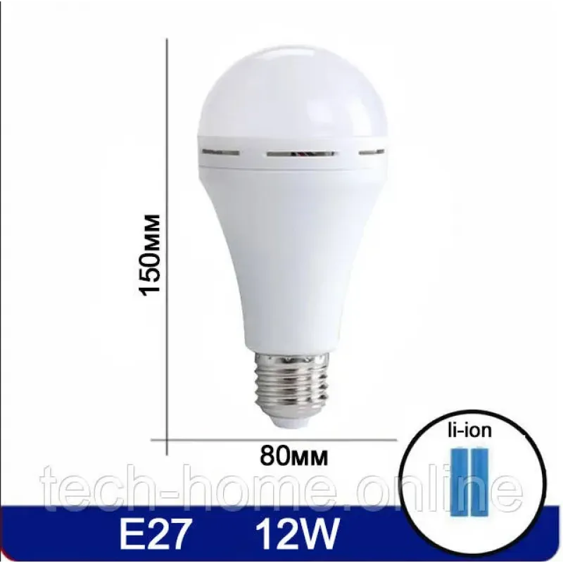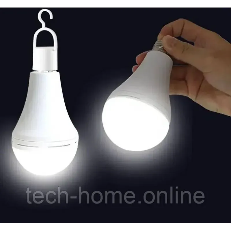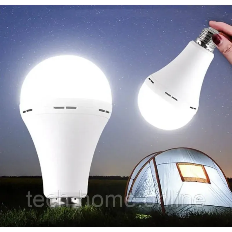 Акумуляторна Лампа 12W перезаряджаєма з акумуляторами Li-Ion, цокольна з підвіскою та заглушкою біла 6500К