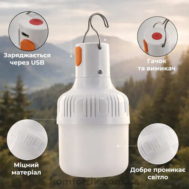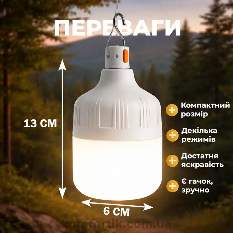 🛒 Шукаєте надійний товар? Ви можете купити Акумуляторна лампа на гачку Кемпінгова лампа для походів на акумуляторі 60W Аварійна лампочка для кемпінгу Світлодіодний ліхтар в нашому інтернет-магазині Shtyrman. Гарантія якості та швидка доставка по всій Україні!