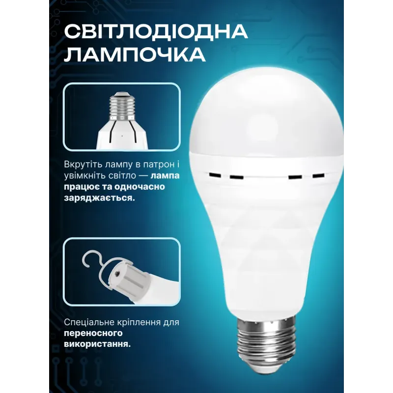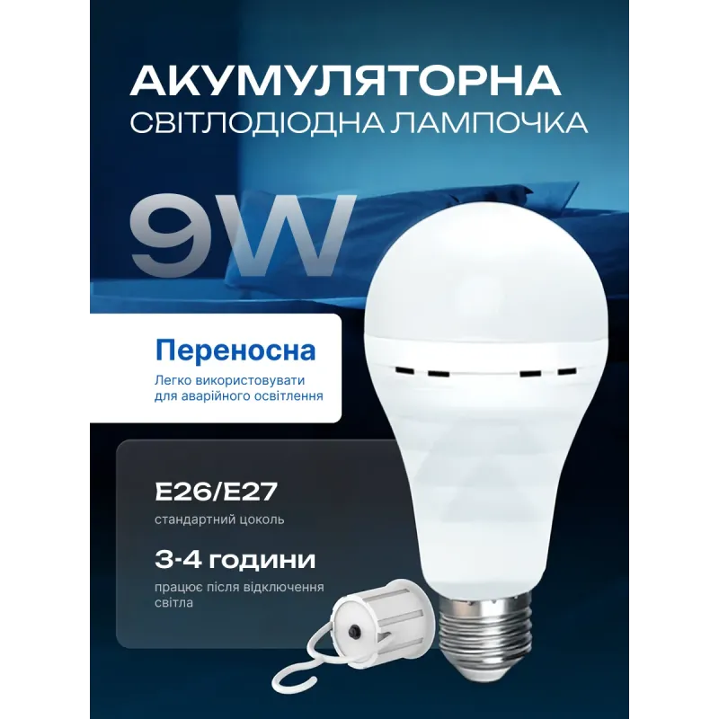 Акумуляторна LED лампа Kasotile E27 9 Вт 6000K для відключень світла