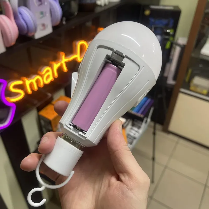 Акумуляторна лампа 20ват у патрон E27 з гачком 20 W з акумулятором. Аварійна лампа на акумуляторіПотужна Аварійна Акумуляторна LED-лампа 8442 20W E27 з 2 акумуляторами 18650 (до 4 годин) — це лампа на акумуляторі, яка працює як звичайна лампочка, коли є електрика, а у разі вимкнення електроенергії продовжує світити від акумуляторів.