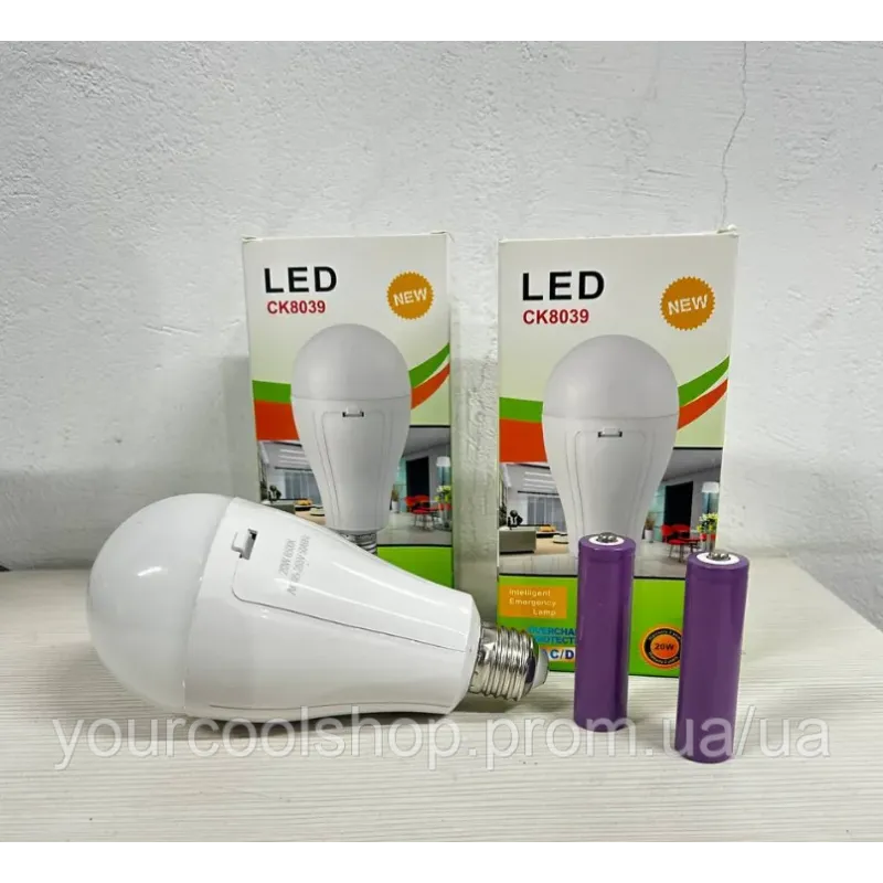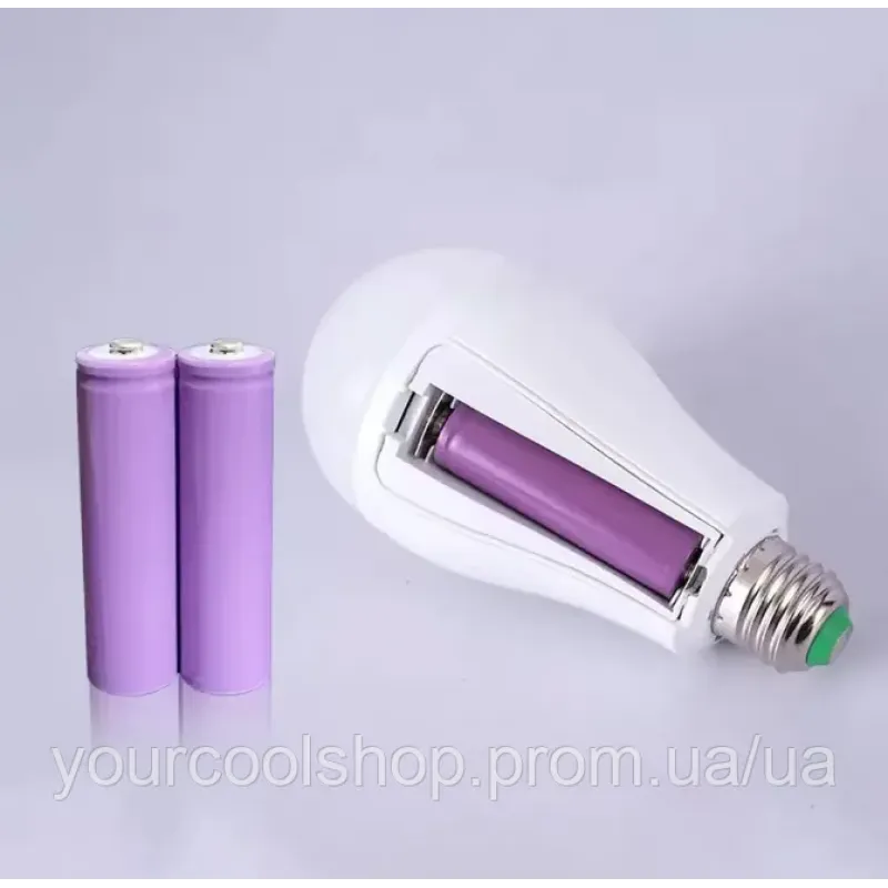 Аварійна LED-лампа 20 Вт із двома акумуляторами 18650 на патрон Е27 для автономної роботи без електрики та світла, економить електрику до 90%