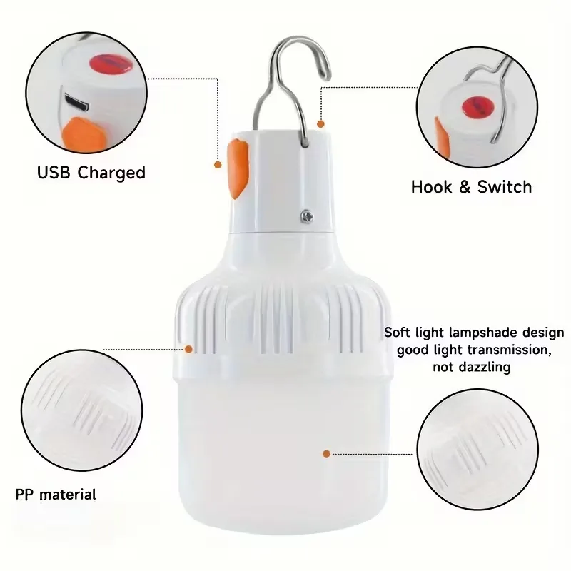 Універсальна портативна LED-лампа для дому, кемпінгу, гаража та аварійних ситуацій. Працює як звичайне освітлення та як автономне джерело світла під час відключень електроенергії.