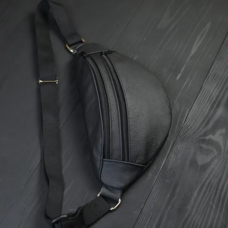 Бананка из натуральной кожи, сумка мужская-женская барсетка черная сумочка