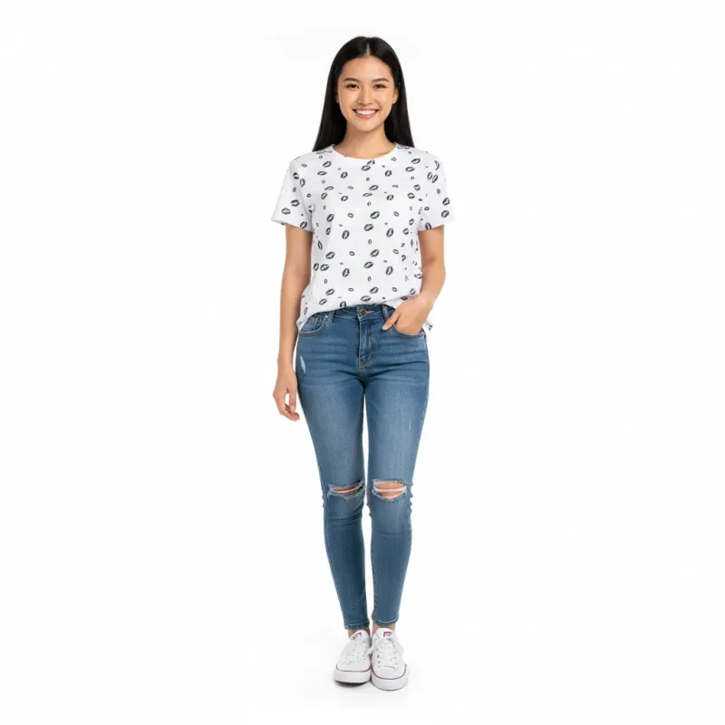 Біла футболка з романтичним принтом: Губи та Серця для неї