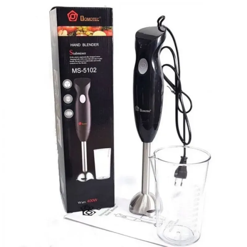 Domotec MS-5102 – блендер високої якості з ніжкою з нержавіючої сталі, що забезпечує легке та швидке подрібнення ягід, фруктів, супів пюре, коктейлів, дитячого харчування та інших інгредієнтів. Нарізні ножі довго залишаються гострими, що збільшує термін служби приладу. Ця модель підходить для домашнього приготування суп пюре, який багато хто любить. Мами оцінять цей прилад у приготуванні дитячого харчування, адже потужність блендера 400 Вт дозволяє зробити це швидко і без зайвих зусиль. Людям які стежать за своїм харчуванням так само корисно придбати даний прилад на своїй кухні, адже що може бути краще ніж свіжий смузі з ранку.