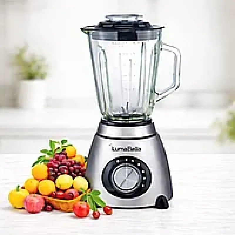 Блендер LumaBella LB-53035 – універсальний кухонний помічник для щоденного приготування напоїв та страв. Оснащений потужним мотором 1000 Вт та місткою скляною чашею 1,5 л, що робить його ідеальним для смузі, коктейлів, супів-пюре, соусів та подрібнення інгредієнтів.