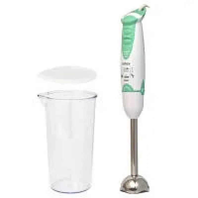Блендер Rotex RTB-920-W – ручний блендер, потужність 800 Вт, плавний контроль швидкості, ножі з нержавіючої сталі з титановим покриттям, пластиковий корпус зі знімною ногою, матеріал чаші пластик, насадка-міксер з 2-ма віночками, гак для 0,000 мл 0. Колір білий. Характеристики: Тип: блендер Харчування: 220-240 В Потужність: 800 Вт Об’єм мірної склянки: 0,6л Матеріал ножа: нержавіюча сталь із титановим покриттям. Матеріал корпусу: пластик Матеріал чаші: пластик Насадка-міксер з 2-ма віночками Гак для замісу тіста Контроль з плавним регулюванням