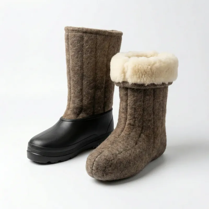 Найтепліше рішення для холодної зими — класичні суконні бурки-валянки. Ця модель розроблена спеціально для захисту ніг від сильних морозів (до -20°C і нижче). Завдяки широкому розмірному ряду (38-45), вони чудово підходять як чоловікам, так і жінкам. Ідеальний вибір для людей старшого віку, мешканців приватних будинків та для роботи в холодних приміщеннях. Верх взуття виготовлений із щільного ворсистого сукна (повсті), яке за своїми властивостями нагадує традиційні валянки: воно натуральне, не парить ногу, але чудово утримує тепло. Всередині чоботи густо утеплені штучним хутром (овчина). Зручна застібка-блискавка по центру дозволяє легко взуватися людям з високим підйомом або хворими ногами, не нахиляючись зайвий раз. Підошва виготовлена зі спіненого ПВХ, вона висока, не промерзає від землі та має рифлений протектор проти ковзання. Підошва надійно пришита до верху взуття, що гарантує довговічність. Це легке, м'яке та "тихе" взуття подарує комфорт вашим ногам. Характеристики: Матеріал верху: Сукно (повстяний текстиль) Матеріал підкладки: Штучне хутро (густе) Підошва: ПВХ (прошита, не ковзає) Застібка: Блискавка спереду Розміри: 38-45 (повномірні) Сезон: Зима (мороз) Країна виробник: Україна