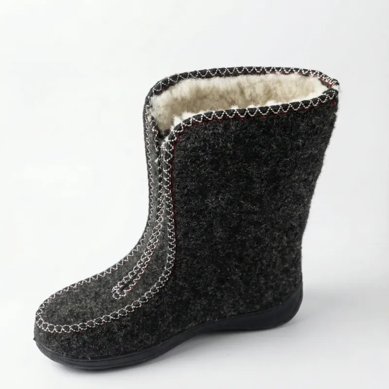 Найтепліше рішення для холодної зими — високі суконні бурки (чуні) на блискавці. Ця модель розроблена для максимального збереження тепла: висока халява надійно закриває ногу вище кісточки, захищаючи від протягів та холоду. Ідеально підходять для приватного будинку, дачі або прогулянок у суху морозну погоду. Верх виготовлений із щільного чорного взуттєвого сукна (повсті), яке відрізняється високою зносостійкістю. Головна перевага моделі — застібка-блискавка спереду. Таке розташування дозволяє легко взувати та знімати взуття людям з будь-яким підйомом стопи, що робить ці бурки чудовим подарунком для мам та бабусь. Всередині чоботи утеплені густим шаром штучного хутра (світла овчина). Декоративна строчка додає взуттю охайного вигляду. Підошва лита з ПВХ, гнучка, не дубіє на морозі та має рельєфний протектор. Характеристики: Сезон: Зима / Холодна осінь Матеріал верху: Сукно (щільний текстиль/повсть) Матеріал підкладки: Штучне хутро (дуже тепле) Застібка: Блискавка спереду (змійка) Колір: Чорний Підошва: ПВХ (лита, протиковзка) Розміри в наявності: 37, 38, 39, 40, 41, 42