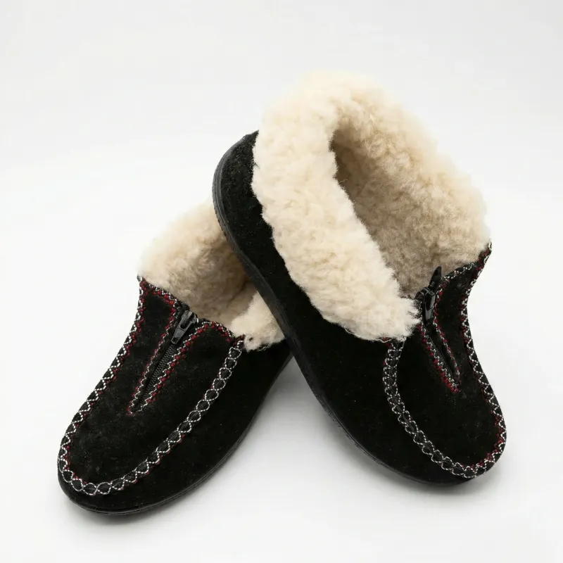 - Контрастний дизайн: Охайний чорний колір повсті підкреслений стильною декоративною прошивкою (червоно-білою або білою), що додає взуттю сучасного вигляду.