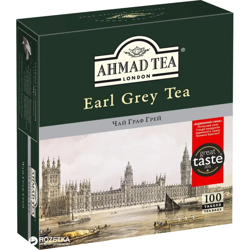Чай чорний Ahmad Tea Earl Grey 100 пакетиків | Граф Грей, З бергамотом, Great Taste Award