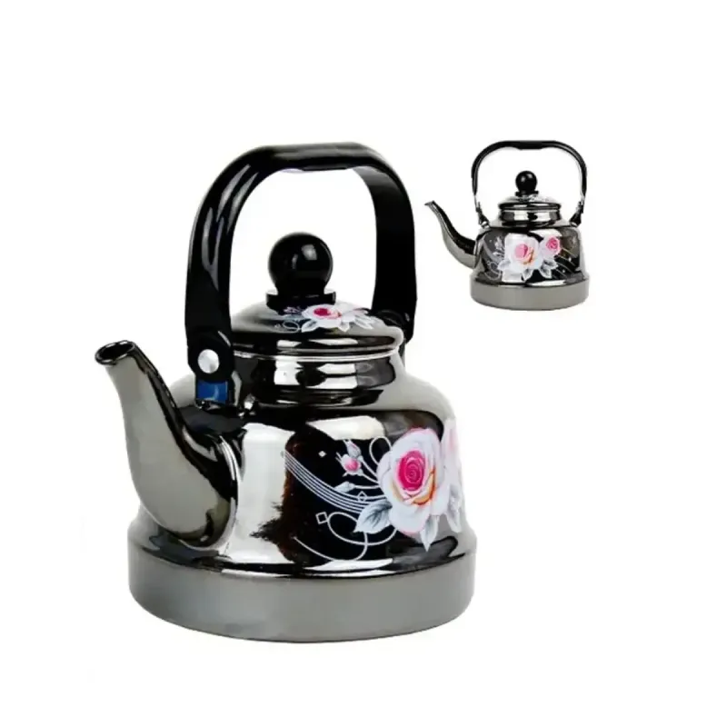 Класичний емальований чайник об'ємом 2.5 літра — це поєднання традиційної якості та домашнього затишку. Виготовлений з міцної сталі та покритий подвійним шаром жаростійкої емалі, цей чайник є екологічно безпечним: емаль не вступає в реакцію з водою, зберігаючи її природний смак та властивості. Дизайн виконаний у глибокому чорному кольорі та прикрашений ніжним квітковим малюнок "Троянда", що робить його гарним доповненням до інтер'єру кухні в стилі прованс або класика. Важливою перевагою моделі є рухома ручка, яка опускається вбік — це значно спрощує наповнення чайника водою та його миття, а також економить місце при зберіганні. Чайник сумісний з більшістю типів кухонних плит. Характеристики: Тип: Чайник емальований Об'єм: 2.5 л Матеріал: Вуглецева сталь з емальованим покриттям Колір: Чорний з декором (Квіти) Ручка: Рухома (опускається), не нагрівається Особливості: Гігієнічність, довговічна емаль, легкий догляд