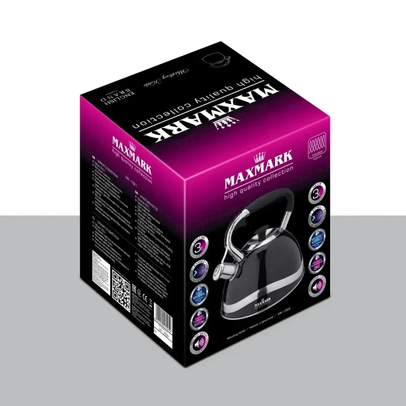 Чайник зі свистком 3.0 л Maxmark MK-1322 чорний. Нержавіюча сталь, для індукції та газу