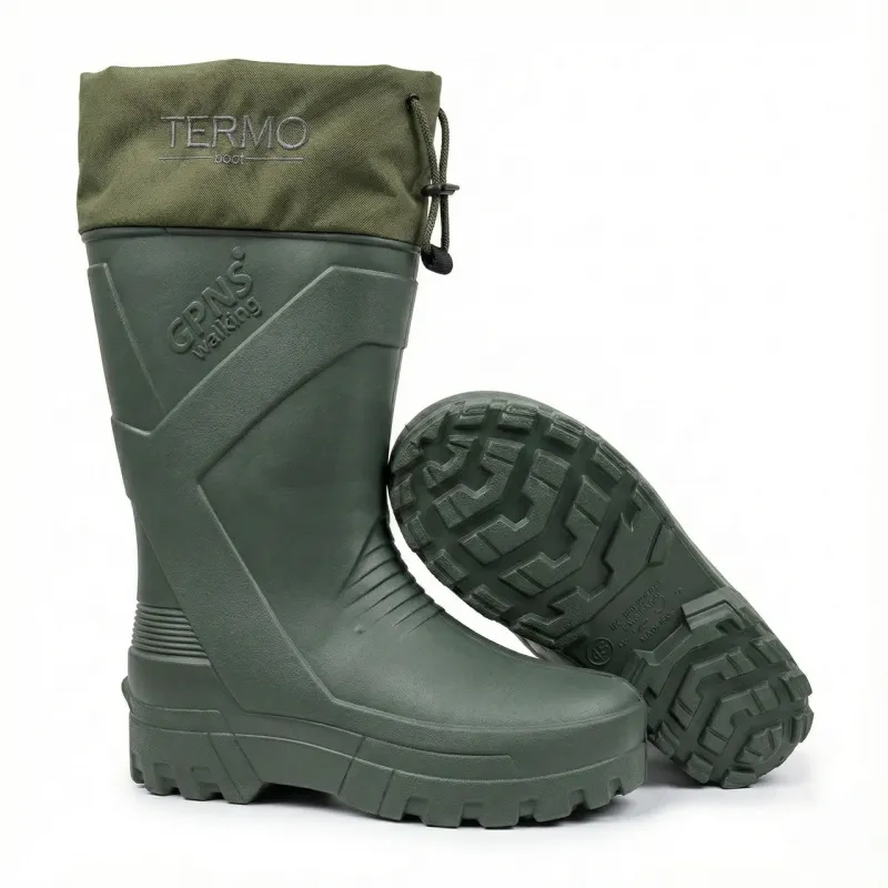 Легкі та надійні чоловічі термо-чоботи від популярного бренду Gipanis (GPNS). Ця модель створена для тих, хто цінує комфорт та сухість ніг за будь-якої погоди. Вони ідеально підходять для зимової риболовлі, полювання, роботи на дачі або прогулянок у сльоту та сніг. Чоботи виготовлені з високоякісної піни ЕВА, яка забезпечує чудову термоізоляцію та 100% захист від вологи. Матеріал залишається еластичним та не тріскається навіть при низьких температурах. Завдяки пористій структурі піни, взуття має дуже малу вагу і не втомлює ноги при тривалій ходьбі. Верхня частина халяви оснащена щільним текстильним манжетом із написом "TERMO boot" та шнурком-затяжкою. Це дозволяє надійно зафіксувати чобіт на нозі та запобігти потраплянню всередину снігу, дощу чи бруду. Потужна підошва з глибоким протектором гарантує стійкість на слизьких поверхнях. Характеристики: Сезон: Зима / Холодна осінь Матеріал верху: Піна ЕВА (водонепроникна) Особливості: Манжет "Termo" із затяжкою, мала вага Призначення: Риболовля, полювання, господарські роботи Колір: Зелений (Олива/Хакі) Виробник: Україна (Gipanis) Розміри в наявності: 42, 43, 44, 45