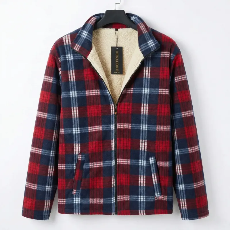 Чоловіча сорочка на хутрі в клітинку DUNAUONE. Тепла зимова куртка на блискавці 50-60