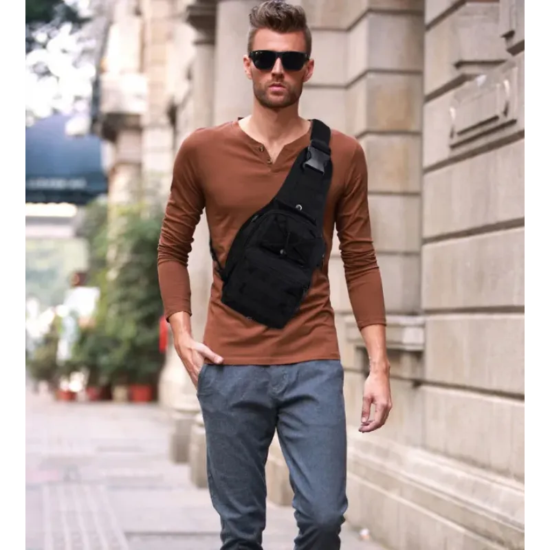 Сумка - барсетка через плече Тактична сумка на плече виготовлена з міцної тканини, якісне пошиття та фурнітура. Має одне основне відділення та дві додаткові кишені. Переваги Зручна сумка з одним плечовим ременем, завдяки якій доступ до вмісту здійснюється поворотом, не знімаючи. Виготовлений зі стійкого до стирання та розриву поліестеру 600D. Він ідеально підійде як для коротких поїздок по природі, так і для повсякденного використання в місті. Сумка складається з основного відділення та двох передніх кишень, зокрема мініорганайзером. На кишенях, збоку та на частини слінга шити стрічки PALS, які дають змогу кріпити систему MOLLE. Верхня кишеня має липучку для маркування сумки значком або емблемою. Матеріал щільний, прогумований зсередини, дуже витривалий, водостійкий. Особливості: Зручний плечовий ремінь для швидкого зняття, широка ручка для носіння в руці, D-кільця для кріплення додаткових аксесуарів, Застібки-блискавки YKK® авторитетної японської компанії, включно з основною двосторонню застібкою-блискавкою, сумки, дренажні отвори, що тягнеться на всю довжину. Характеристики: - Об'єм, розмір: 6л, (26х19х10 см) - Матеріал — 600 den, водовідштовхувальний