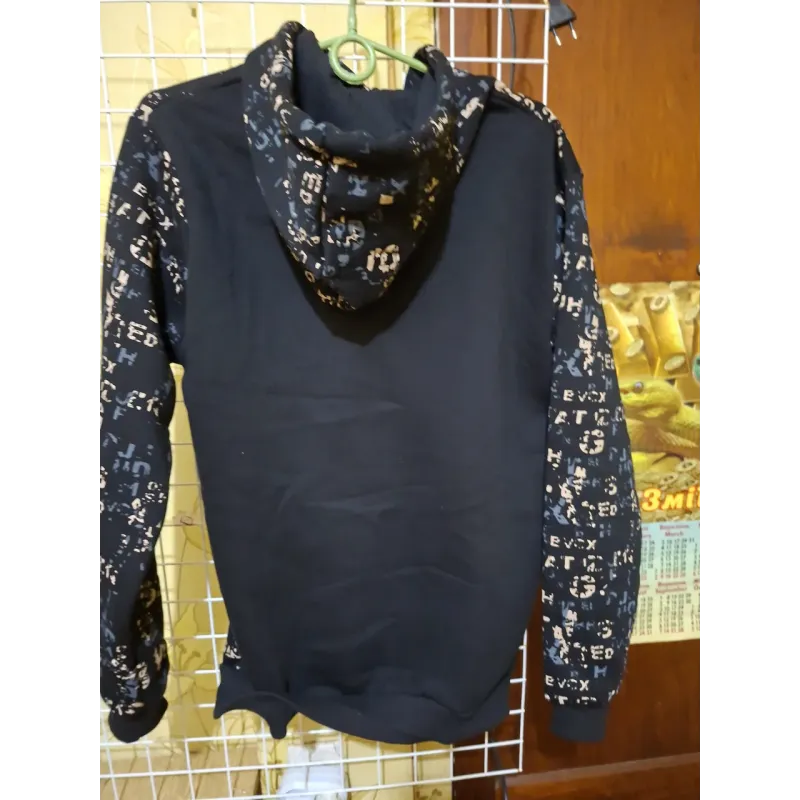 Чоловіче худі з принтом "Літери", чорне (Розміри 46-52). Стильна молодіжна толстовка з капюшоном