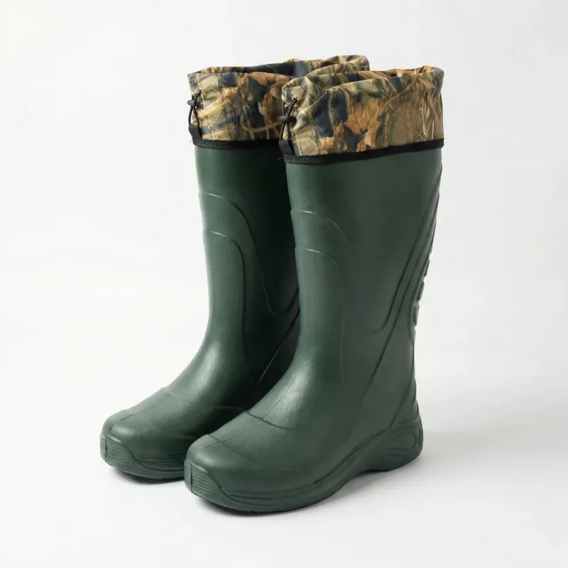 Універсальні чоловічі чоботи з піни ЕВА (EVA) — ідеальний вибір для активного відпочинку, риболовлі, полювання або роботи на дачі. Головна перевага цієї моделі — неймовірна легкість. Ноги в них не втомлюються навіть після тривалих переходів по пересіченій місцевості. Особливості моделі: Захисна манжета: Верх взуття оснащений надставкою з водовідштовхувальної тканини камуфляжного забарвлення ("суха трава/очерет"). Завдяки шнурку з фіксатором ви можете щільно затягнути халяву, запобігаючи потраплянню всередину сміття, гілок, води та комах. Матеріал ЕВА: Цільнолита основа гарантує 100% герметичність. Піна відмінно зберігає тепло тіла, тому такі чоботи тепліші за звичайні гумові аналоги. Зручна підошва: Рельєфний протектор забезпечує стійкість на мокрій траві та бруді. Це практичне взуття для тих, хто цінує комфорт та сухість ніг у будь-яку погоду. Характеристики: Матеріал: Піна ЕВА (EVA) Тип верху: Манжета на затяжці (Камуфляж) Колір: Темно-зелений (Хакі) Вага: Дуже легкі Розміри: 41, 42, 43, 44, 45 Сезон: Весна / Літо / Осінь