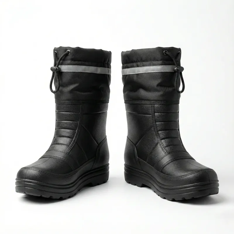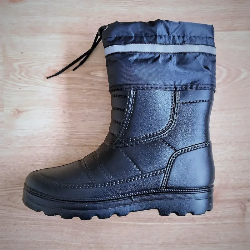 Універсальні чорні чоботи з утеплювачем — практичний вибір для роботи та негоди. Ця модель розроблена для жорстких умов експлуатації. Чорний колір не мазкий, а матеріал чобіт стійкий до вологи, бруду та хімікатів (мастила, бензин). Ідеально підходять для охоронців, будівельників, працівників комунальних служб, а також для рибалки чи дачі. Переваги моделі: Безпека: Широка світловідбиваюча стрічка на манжеті робить вас помітним у темряві (важливо для роботи біля дороги). Захист від снігу: Висока текстильна манжета зі шнурком-затяжкою запобігає попаданню снігу та сміття всередину чобота. Тепло: Комплектуються теплим знімним вкладишем (панчохою), який зігріває ноги в холодну пору року. Підошва: Товста, рельєфна підошва забезпечує хороше зчеплення на слизькій поверхні. Матеріал: Міцний ПВХ/ЕВА, який не тріскається і не пропускає воду. Характеристики: Колір: Чорний (Універсальний) Сезон: Осінь / Зима Утеплювач: Знімний (в комплекті) Особливості: Манжета на затяжці, світловідбиваюча смуга