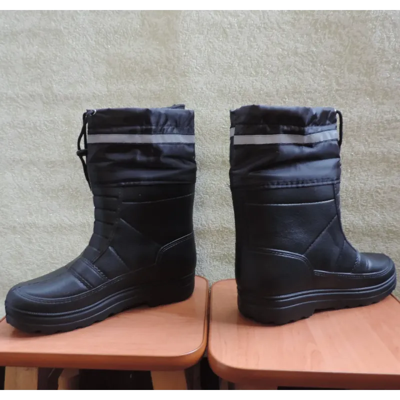 Універсальні чорні чоботи з утеплювачем — практичний вибір для роботи та негоди. Ця модель розроблена для жорстких умов експлуатації. Чорний колір не мазкий, а матеріал чобіт стійкий до вологи, бруду та хімікатів (мастила, бензин). Ідеально підходять для охоронців, будівельників, працівників комунальних служб, а також для рибалки чи дачі. Переваги моделі: Безпека: Широка світловідбиваюча стрічка на манжеті робить вас помітним у темряві (важливо для роботи біля дороги). Захист від снігу: Висока текстильна манжета зі шнурком-затяжкою запобігає попаданню снігу та сміття всередину чобота. Тепло: Комплектуються теплим знімним вкладишем (панчохою), який зігріває ноги в холодну пору року. Підошва: Товста, рельєфна підошва забезпечує хороше зчеплення на слизькій поверхні. Матеріал: Міцний ПВХ/ЕВА, який не тріскається і не пропускає воду. Характеристики: Колір: Чорний (Універсальний) Сезон: Осінь / Зима Утеплювач: Знімний (в комплекті) Особливості: Манжета на затяжці, світловідбиваюча смуга