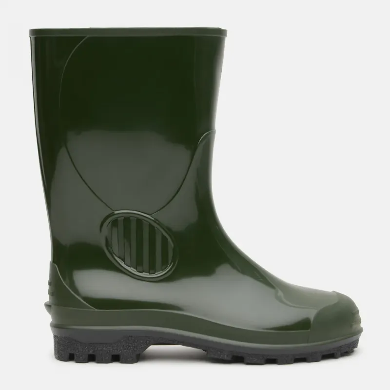 Класичні чоловічі гумові чоботи (Україна). Надійна та проста модель для чоловіків. Виготовлені з ПВХ методом суцільного лиття — це означає, що вони гарантовано не протікають, бо не мають клейових швів. Ідеально підходять для робіт на городі, дачі, походу в ліс за грибами або риболовлі у теплу пору року. Переваги: Великі розміри: Повноцінна чоловіча сітка з 41 по 47 розмір (підходять на широку ногу). Матеріал: Зносостійкий ПВХ — не тріскається, легкий, еластичний. Захист: Висока халява надійно захищає штани від бруду та води. Підошва: Рельєфна, стійка до ковзання на багнюці. Догляд: Глянцева поверхня легко миється звичайною водою. Характеристики: Колір: Темно-зелений Розміри: 41, 42, 43, 44, 45, 46, 47 Сезон: Весна / Літо / Осінь Матеріал: ПВХ