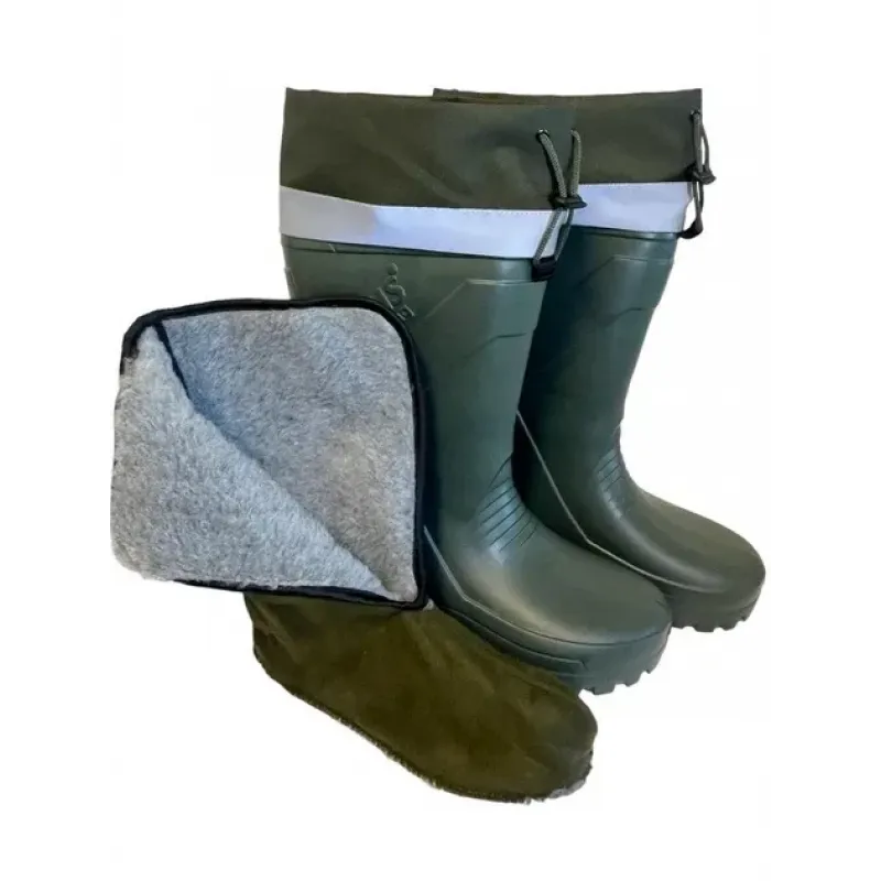 Чоловічі гумові чоботи Gipanis утеплені (Зелені). Високі чоботи для рибалки та полювання з манжетою