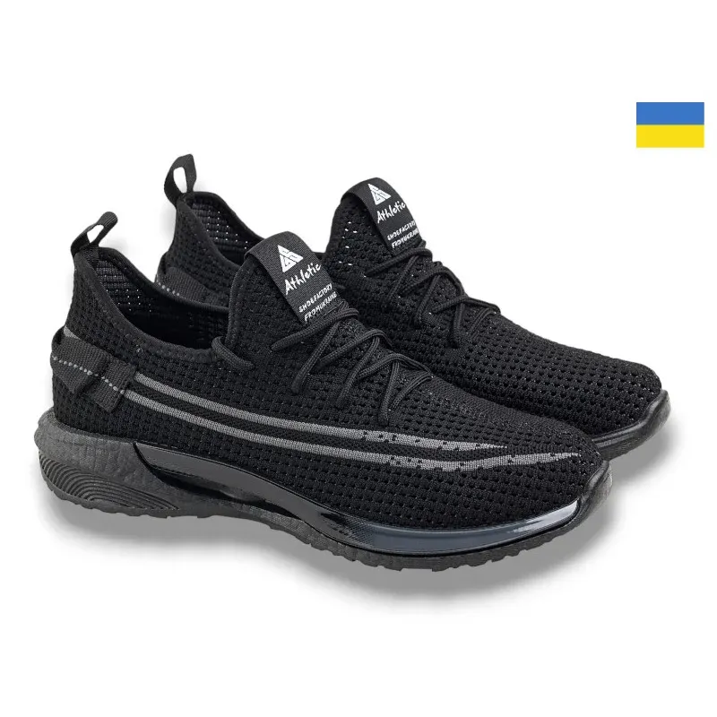 Зустрічайте хіт літнього сезону від української фабрики Gipanis (серія Athletic)! Ці чорні чоловічі кросівки створені для тих, хто цінує максимальну свободу рухів. Верх моделі виконаний за технологією безшовної в'язки (текстильна сітка), завдяки чому взуття сідає по нозі як шкарпетка — ніде не тисне і забезпечує ідеальну вентиляцію. Кросівки мають сучасний дизайн із декоративною шнурівкою та стильними бічними смужками. Цілісна конструкція верху (без окремого язичка) дозволяє взуватися миттєво. Чорна підошва виготовлена зі спіненого ПВХ — вона дуже легка, пружна та доповнена глянцевою вставкою на п'яті для додаткової стабілізації та ефектного вигляду. Це взуття ідеальне для повсякденного носіння у спеку, для легких пробіжок або тренувань у залі. Практичний чорний колір робить їх універсальними, а українське виробництво гарантує чудову якість за доступною ціною. Характеристики: Матеріал верху: В'язаний текстиль (сітка) Матеріал підошви: ПВХ / Піна (легка, з амортизацією) Сезон: Літо / Суха весна Стать: Чоловічі Колір: Чорний Розміри: 41-45 Виробник: Gipanis (Україна)