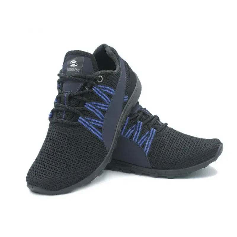 🛒 Шукаєте надійний товар? Ви можете купити Чоловічі кросівки літні сітка Progress. Чорні текстильні кеди з синіми вставками 41-45 в нашому інтернет-магазині Shtyrman. Гарантія якості та швидка доставка по всій Україні!
