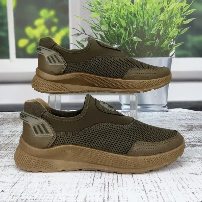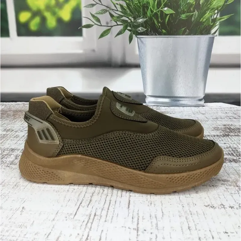 Чоловічі кросівки-сітка Dago Sport Оливкові літні без шнурків (41-45) дихаючі мокасини