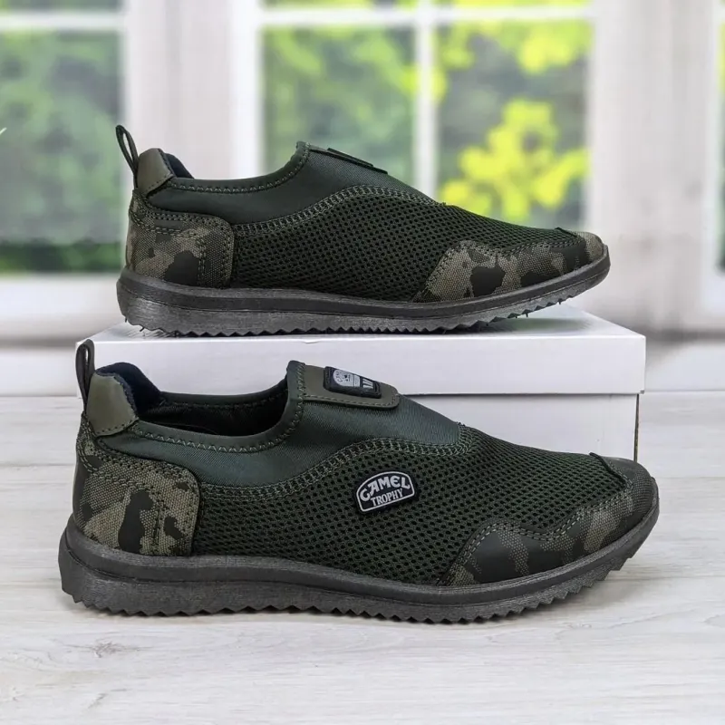 Зустрічайте спекотні дні з комфортом у нових чоловічих мокасинах-сліпонах. Ця модель ідеально підходить для літнього сезону завдяки наскрізній текстильній сітці, яка забезпечує чудову вентиляцію. Ваші ноги "дихатимуть" навіть у найспекотнішу погоду, що запобігає надмірному потовиділенню та дискомфорту. Сліпони виконані у практичному кольорі хакі з стильними камуфляжними вставками на носку та п'яті, що робить їх чудовим вибором не тільки для міста, але й для виїздів на природу, дачу чи риболовлю. Відсутність шнурків та еластичні вставки дозволяють взувати та знімати їх за лічені секунди. Легка та гнучка підошва забезпечує амортизацію при ходьбі, знімаючи навантаження з ніг. Це універсальне взуття поєднує в собі зручність домашніх капців та функціональність кросівок. Вони невибагливі у догляді — легко перуться і швидко сохнуть. Чудовий вибір для чоловіків, які цінують практичність та свободу рухів. Характеристики: Сезон: Літо / Тепла весна Матеріал верху: Текстильна сітка (поліестер) Матеріал підошви: ПВХ (гнучка, зносостійка) Колір: Хакі (Олива) з камуфляжем Застібка: Без застібки (сліпони / резинки) Розміри в наявності: 41, 42, 43, 44, 45 Країна виробник: Китай (Фабричний)