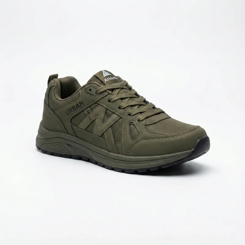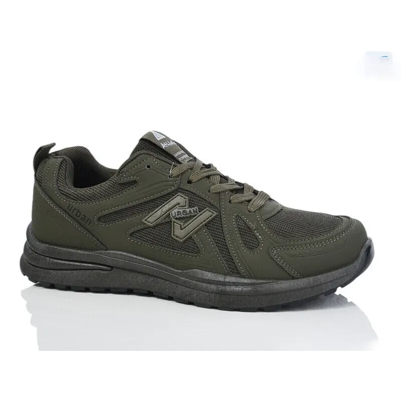 Практичні та стильні чоловічі кросівки у популярному кольорі хакі (олива). Ця модель виконана в актуальному дизайні "мілітарі" та чудово підійде як для повсякденного носіння в місті, так і для активного відпочинку на природі. Верх взуття виготовлений з міцної еко-шкіри, доповненої великими вставками з "дихаючої" текстильної сітки. Таке поєднання матеріалів забезпечує зносостійкість каркасу та відмінну вентиляцію стопи у спеку. Підошва моделі має спортивний профіль, вона гнучка та легка, що дозволяє ногам менше втомлюватися при тривалій ходьбі. Кросівки мають зручну колодку та класичну шнурівку для надійної фіксації на нозі. М'який текстильний кант навколо щиколотки запобігає натиранню. Це універсальне взуття, яке гармонійно поєднується з джинсами, спортивними штанами, шортами або тактичним одягом. Характеристики: Стиль: Мілітарі / Спортивний / Повсякденний. Матеріал верху: Еко-шкіра + Текстильна сітка (вентиляція). Підошва: ПВХ (зносостійка). Колір: Хакі (Оливковий / Зелений). Сезон: Літо / Тепла весна. Розмірний ряд: 41-45.