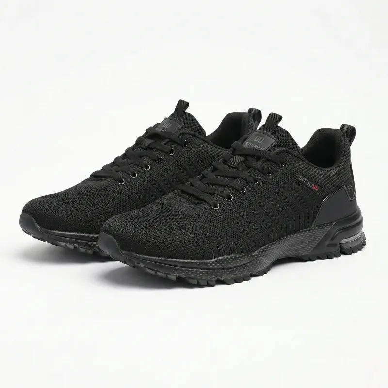 Універсальні чоловічі кросівки для літнього сезону, доступні у стандартних та великих розмірах (до 49-го). Верх моделі виконаний з міцного в'язаного текстилю (сітки), який забезпечує вільну циркуляцію повітря, запобігаючи перегріванню стопи у спеку. Модель має класичний дизайн у практичному чорному кольорі, що робить її ідеальним вибором для щоденного носіння. М'яка підошва добре амортизує, а посилена п'ята забезпечує додаткову стабілізацію стопи. Шнурівка дозволяє відрегулювати взуття під будь-який підйом ноги, що особливо важливо для власників великих розмірів. Це легке та комфортне взуття стане незамінним для прогулянок містом, роботи чи активного відпочинку. Лаконічний логотип бренду Situo на боковій частині додає моделі стильного акценту. Характеристики: Тип взуття: Кросівки сітка / Взуття великих розмірів (Батали) Матеріал верху: В'язаний текстиль (дихаюча сітка) Матеріал підошви: ПВХ/Піна (легка, зносостійка) Колір: Чорний Сезон: Літо / Тепла весна Розміри: 41-49 (наявність велетнів) Особливості: Повітропроникні, широкий розмірний ряд.