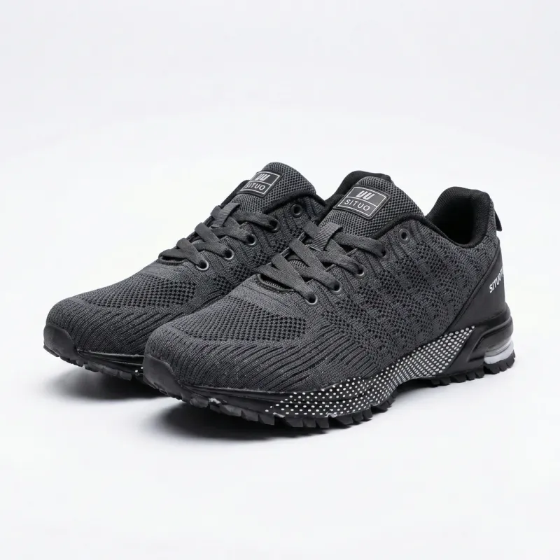 Сучасні чоловічі кросівки Situo — це поєднання стильного дизайну та комфорту для спекотного літа. Верх моделі виконаний з міцного в'язаного текстилю (сітки) темно-сірого кольору, який забезпечує відмінну вентиляцію та приємно облягає стопу. Головна "фішка" моделі — оригінальна підошва з білим візерунком у крапку на бокових частинах, що надає взуттю динамічного та свіжого вигляду. Підошва має рельєфний протектор для надійного зчеплення з поверхнею. Класична шнурівка дозволяє ідеально відрегулювати повноту, а м'який задник запобігає натиранню. Темно-сірий колір є максимально практичним для щоденного носіння, оскільки на ньому менше помітний пил. Це чудовий вибір під джинси, шорти або спортивний одяг. Характеристики: Тип взуття: Кросівки сітка / Повсякденні снікери Матеріал верху: В'язаний текстиль (дихаюча сітка) Матеріал підошви: ПВХ/Піна (декор у крапку) Колір: Темно-сірий (Антрацит) Бренд: Situo Сезон: Літо Розміри: 41-46