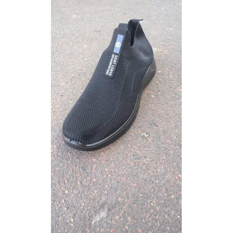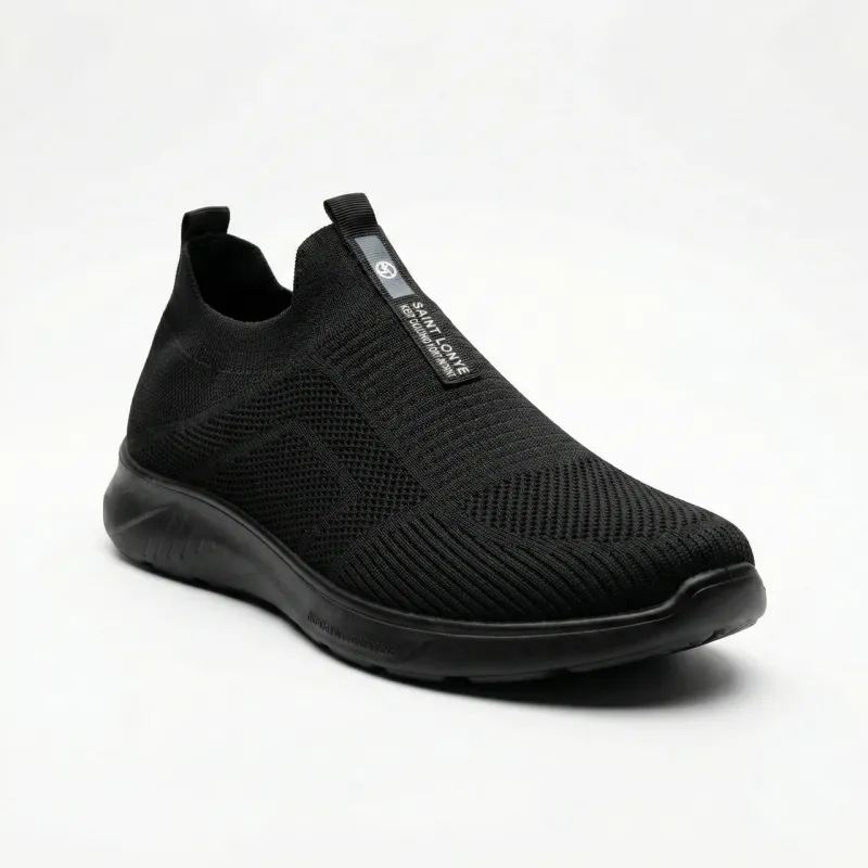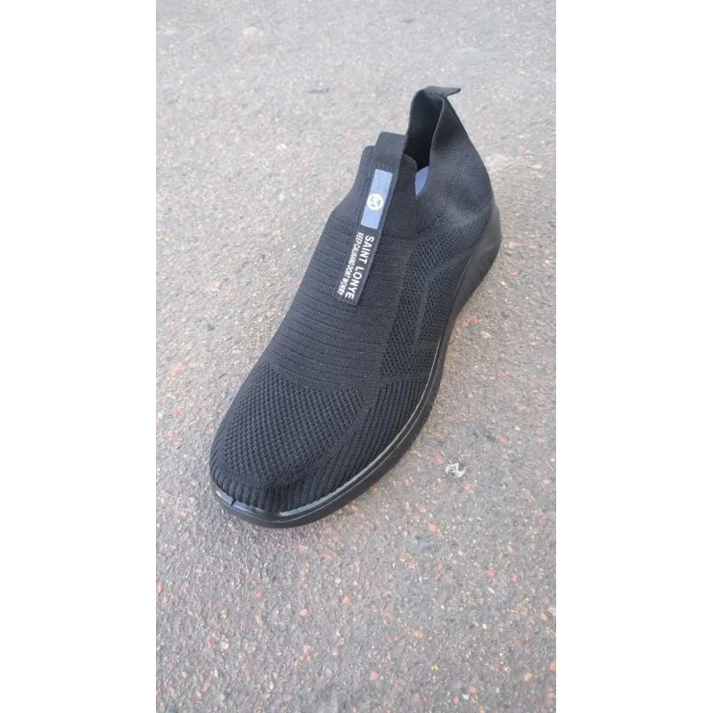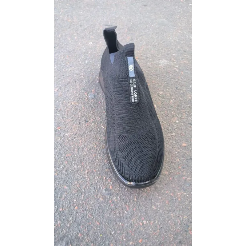 Стильні та неймовірно зручні чоловічі сліпони типу "кросівки-шкарпетки" — тренд цього літнього сезону. Верх моделі виконаний із суцільного еластичного текстилю (в'язаної сітки), який ідеально адаптується до форми стопи, не тисне та забезпечує максимальну вентиляцію. Відсутність шнурків дозволяє взуватися за одну секунду, а еластична манжета надійно фіксує взуття на нозі. Декоративна стрічка на підйомі з написом "SAINT LONYE KEEP CALM AND DON'T WORRY" додає моделі оригінальності та сучасного вигляду. Повністю чорний колір (Full Black) робить цю пару універсальною — вона пасує до будь-якого спортивного чи повсякденного одягу. Гнучка підошва гарантує комфорт навіть при тривалих прогулянках. Характеристики: Тип взуття: Сліпони / Кросівки-шкарпетки Матеріал верху: Еластичний текстиль (Flyknit) Матеріал підошви: ПВХ (гнучка) Колір: Чорний Сезон: Літо Особливості: Без шнурків, напис на язичку Розміри: 41-45
