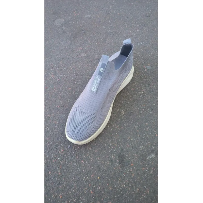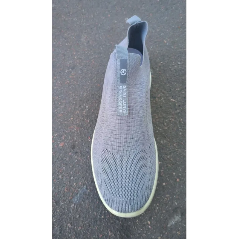 Ультралегкі та дихаючі чоловічі сліпони у світло-сірому кольорі — ідеальний вибір для спекотних літніх днів. Верх взуття виготовлено з якісного еластичного текстилю, який щільно облягає ногу, наче шкарпетка, забезпечуючи неперевершений комфорт та вентиляцію. Модель не має шнурків, тому взувається максимально швидко та зручно. Фірмова стрічка з написом "SAINT LONYE" на підйомі виступає стильним акцентом та додатково фіксує стопу. Біла підошва додає взуттю свіжості та чудово амортизує при ходьбі. Сірий колір є універсальним: він пасує до джинсів, світлих шортів та спортивних штанів. Текстильний верх приємний на дотик і не натирає, дозволяючи носити взуття навіть без шкарпеток. Характеристики: Тип взуття: Сліпони / Кросівки-шкарпетки Матеріал верху: Еластичний текстиль (Flyknit) Матеріал підошви: ПВХ/Піна (гнучка, біла) Колір: Сірий Сезон: Літо Особливості: Без шнурків, дихаюча структура Розміри: 41-45