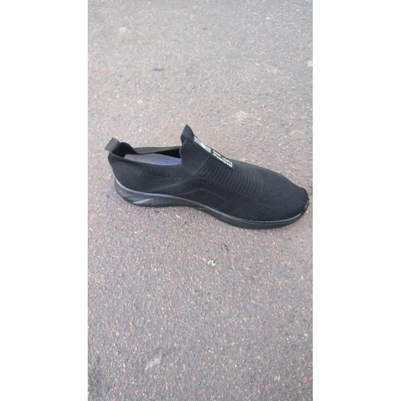 Стильні та неймовірно зручні чоловічі сліпони типу "кросівки-шкарпетки" — тренд цього літнього сезону. Верх моделі виконаний із суцільного еластичного текстилю (в'язаної сітки), який ідеально адаптується до форми стопи, не тисне та забезпечує максимальну вентиляцію. Відсутність шнурків дозволяє взуватися за одну секунду, а еластична манжета надійно фіксує взуття на нозі. Декоративна стрічка на підйомі з написом "SAINT LONYE KEEP CALM AND DON'T WORRY" додає моделі оригінальності та сучасного вигляду. Повністю чорний колір (Full Black) робить цю пару універсальною — вона пасує до будь-якого спортивного чи повсякденного одягу. Гнучка підошва гарантує комфорт навіть при тривалих прогулянках. Характеристики: Тип взуття: Сліпони / Кросівки-шкарпетки Матеріал верху: Еластичний текстиль (Flyknit) Матеріал підошви: ПВХ (гнучка) Колір: Чорний Сезон: Літо Особливості: Без шнурків, напис на язичку Розміри: 41-45