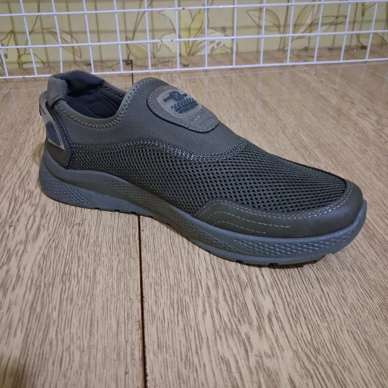 Чоловічі сліпони з дихаючої сітки. Колір хакі (оливковий). Виробник Dago Style. Легка підошва, посилена п'ята. Практичний вибір на літо. Розміри 41-45. Повний опис: Чоловічі сліпони Dago Style у кольорі хакі (олива) — це ідеальне поєднання комфорту та практичності. Модель виконана в актуальному стилі "мілітарі", який чудово пасує до літнього одягу (шорти, джинси, спортивні штани). Верх виготовлений із наскрізної 3D-сітки, що гарантує максимальну вентиляцію стопи навіть у найспекотніші дні. Цей колір є найбільш невибагливим у догляді — на ньому майже не помітний пил та бруд. Переваги моделі: Колір: Практичний оливковий відтінок, універсальний для міста та природи. Комфорт: Еластичні вставки з боків дозволяють взуватися без допомоги рук, а м'яка устілка Dago забезпечує зручність при ходьбі. Надійність: П'ята додатково укріплена накладкою з написом "SPORT", що захищає сітку від протирання та тримає форму. Підошва: Легка та гнучка, з амортизуючим рельєфом. Характеристики: Виробник: Dago Style (Україна) Тип: Сліпони / Мокасини Матеріал верху: Текстильна сітка Підошва: ПВХ Колір: Хакі (Khaki / Olive) Сезон: Літо Розміри: 41-45