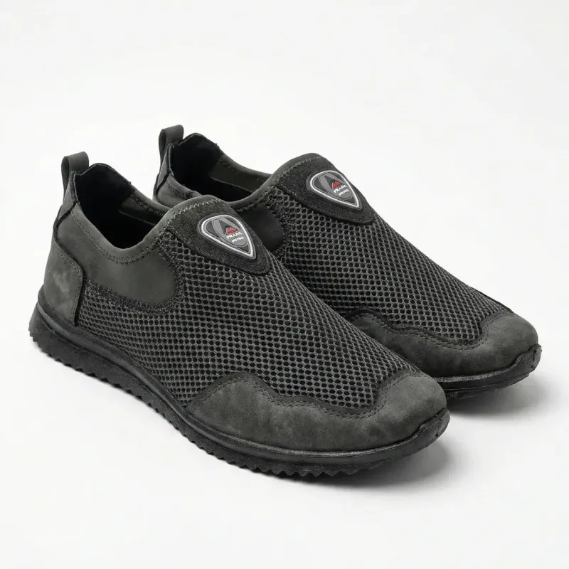 Практичність та комфорт в одній парі! Ці чоловічі сліпони — ідеальний варіант для літнього сезону. Модель виконана у популярному темно-сірому кольорі, який не мазкий і чудово поєднується з джинсами, світлими брюками або шортами. Головна особливість цієї моделі — комбінований матеріал верху. Основна частина зроблена з великої текстильної сітки для максимальної вентиляції стопи. А носок та п'ята посилені вставками з якісного еко-нубуку. Це не тільки додає взуттю стильного вигляду, але й захищає найвразливіші місця від зносу та пошкоджень. Замість шнурків тут використовуються еластичні резинки, що дозволяє швидко взуватися та забезпечує зручну посадку на будь-який підйом. Підошва легка, гнучка та має рельєфний протектор для впевненої ходьби. Характеристики: Матеріал верху: Текстильна сітка + Еко-нубук (посилений носок/п'ята) Матеріал підошви: ПВХ (зносостійка, еластична) Сезон: Літо / Тепла весна-осінь Стать: Чоловічі Колір: Темно-сірий (графіт) Розміри: 41-45 Країна виробник: Україна