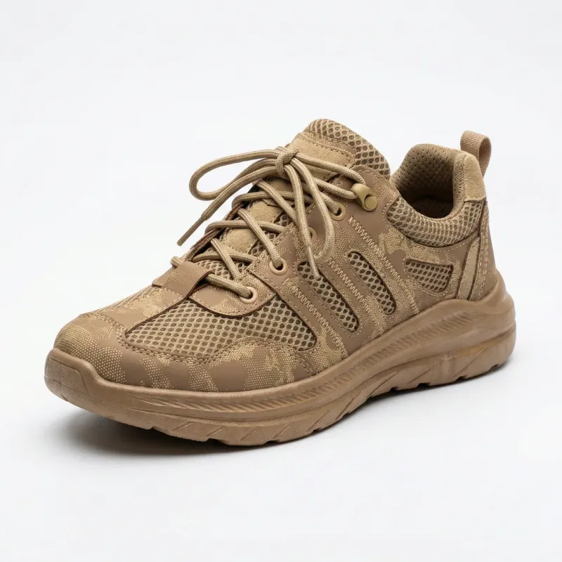 Легкі та надійні тактичні кросівки від українського бренду Dago Style. Модель розроблена спеціально для літнього сезону: верх виконаний з міцної дихаючої сітки з патерном "піксель", що забезпечує відмінну вентиляцію та комфорт навіть у сильну спеку. Кросівки мають посилені вставки з еко-нубуку на носку, п'яті та в зоні шнурівки для захисту від зношування та механічних пошкоджень. Масивна, але легка підошва гарантує чудову амортизацію та зчеплення з поверхнею, що важливо при активному пересуванні по пересіченій місцевості. Завдяки шнурівці взуття надійно фіксується на нозі, а м'який задник запобігає натиранню. Ідеальний вибір для військовослужбовців, туристів, мисливців та всіх, хто цінує стиль мілітарі та комфорт. Характеристики: Тип взуття: Тактичні кросівки / Трекінгове взуття Матеріал верху: Текстильна 3D сітка (дихаюча) + вставки з еко-нубуку Матеріал підошви: ПВХ/Піна (амортизуюча, з протектором) Колір: Койот (Бежевий / Пісочний) з принтом Піксель Застібка: Шнурівка Сезон: Літо / Тепла весна-осінь Країна виробник: Україна (Dago Style) Розміри: 41-45