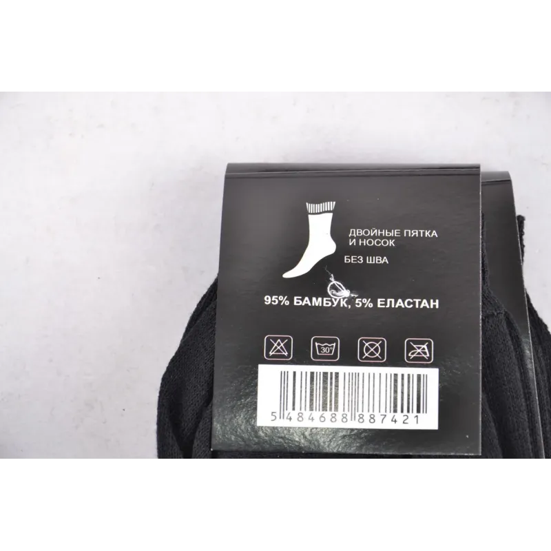 Чоловічі бамбукові шкарпетки "Монтекс", подвійна п'ята і носок, без шва хорошої якості Сезон - Всесезонний Колір ― Чорний Розмір ― Універсальний ( тягнуться від 40 до 45 розміру ) Кількість виробів в упаковці ― 12 пар ( одного розміру і кольору ) Склад ― 95% Бамбук, 5% Еластан Виробництво ― Україна