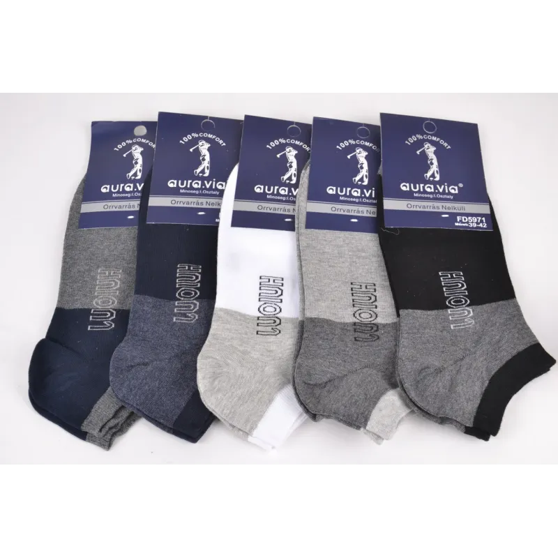 Чоловічі бавовняні занижені шкарпетки торгової марки "AURA", висока якість, різні забарвлення. Колір ― Як на фото Розмір ― 39-42 Кількість виробів в упаковці ― 5 пар (одного розміру, mix кольорів) Склад ― 85% Cotton, 10% Polyamide, 5% Elasthane Виробництво ― Китай