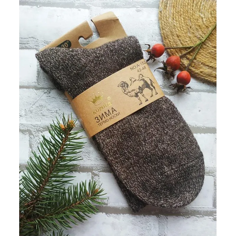 Чоловічі шкарпетки з верблюжою шерстю Інформація, вказана на бирці: Термошкарпетки для спорту, туризму та активного відпочинку з верблюжої вовни з антибактеріальними і термопідтримувальними властивостями розмір 42-48 Склад 70% верблюжа вовна 20% бамбук 5% поліамід 5% еластан