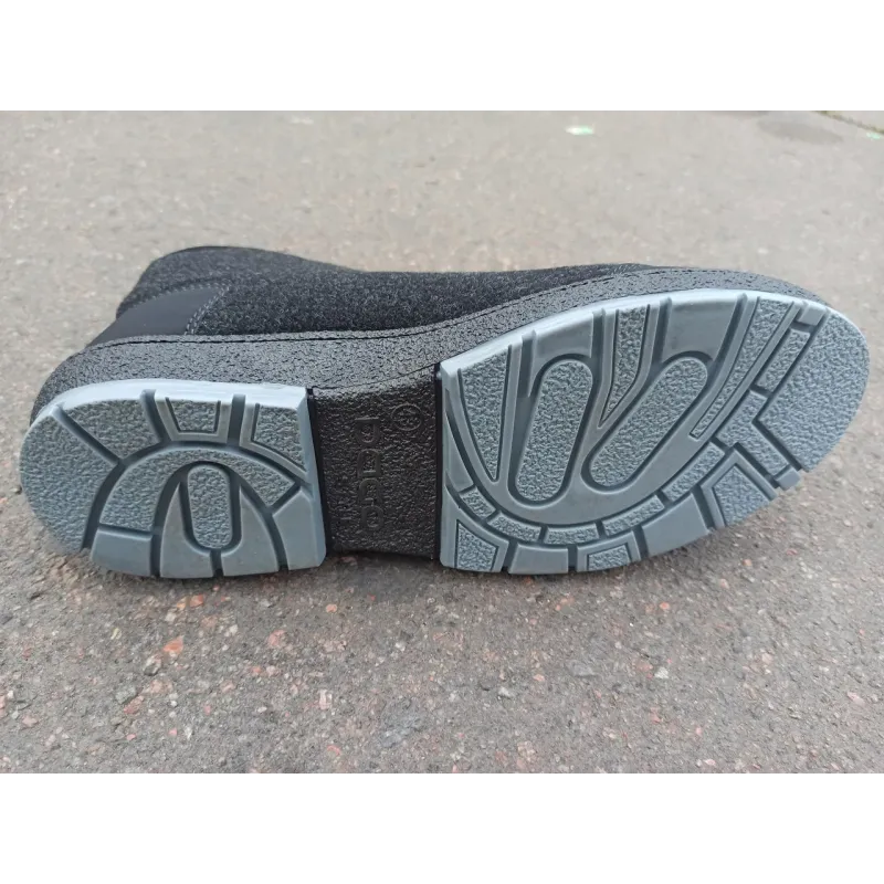 Оригінальні бурки від фабрики Dago Style. Щільна повсть, густе хутро, зручна блискавка спереду. Посилений носок та п'ята. Надійна підошва Dago. Повний опис: Чоловічі зимові бурки від перевіреної української фабрики Dago Style — це еталон теплого та практичного взуття за доступною ціною. Ця модель розроблена спеціально для наших зим, коли мороз змінюється сльотою. Верх виконаний з якісного взуттєвого сукна (повсті), яке «дихає», але чудово тримає тепло. Всередині — густий шар теплого еко-хутра. Взуття посаджене на фірмову підошву Dago, яка відрізняється підвищеною зносостійкістю. Чому обирають Dago Style: Якісна підошва: Лита підошва з логотипом Dago не промерзає, не тріскається на морозі та має гарне зчеплення з поверхнею. Зручність взування: Центральна застібка-блискавка дозволяє легко взути бурки навіть на високий підйом. Захист від зносу: Додаткові накладки з еко-шкіри на носку та п'яті захищають повсть від намокання та протирання. Характеристики: Виробник: Dago Style (Україна, Львів) Матеріал верху: Повсть (сукно) Утеплювач: Штучне хутро (густе) Застібка: Блискавка спереду Підошва: ПВХ (бренд Dago) Колір: Чорний Сезон: Зима