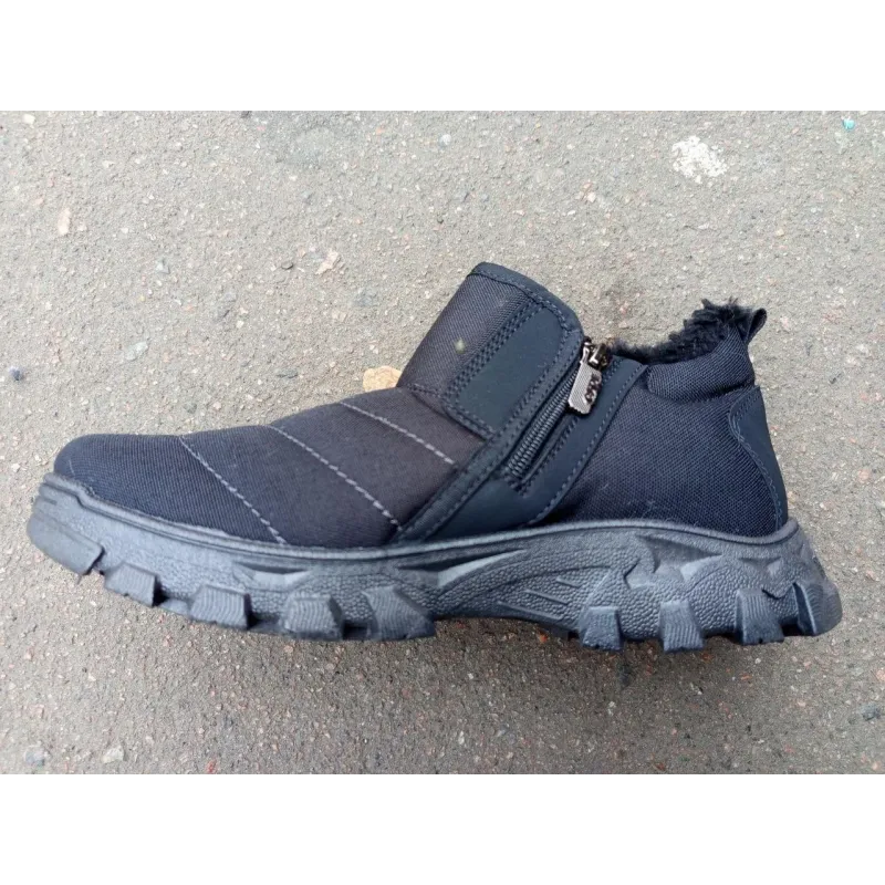Шукаєте зручне та тепле взуття, яке легко взувати? Ці чоловічі зимові черевики — ідеальне рішення для щоденного використання. Модель поєднує в собі комфорт "дутиків" та практичність міських черевиків. Особливо підійде для людей з високим підйомом або широкою стопою, а також для старшого покоління. Чому варто обрати цю модель: Легке взування: Черевики оснащені одразу двома видами застібок — блискавкою збоку та широкою липучкою зверху. Це дозволяє максимально широко розкрити взуття та зафіксувати його по нозі за лічені секунди. Тепло: Всередині модель повністю утеплена густим, м'яким еко-хутром чорного кольору, яке чудово зберігає тепло навіть у сильні морози. Практичність: Верх виконаний з щільного текстилю з водовідштовхувальним ефектом (плащівка). Носок та п'ятка посилені вставками з еко-шкіри для захисту від збивання та вологи. Надійна підошва: Масивна рифлена підошва забезпечує гарне зчеплення зі снігом та ізолює стопу від холодної землі. Це чудовий вибір для прогулянок, поїздок на дачу, риболовлі або роботи на вулиці. Характеристики: Сезон: Зима Матеріал верху: Текстиль (плащівка) + Еко-шкіра Утеплювач: Штучне хутро Застібка: Блискавка + Липучка (Velcro) Підошва: ПВХ (протекторна) Колір: Чорний