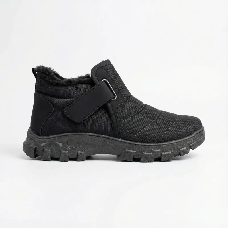 Шукаєте зручне та тепле взуття, яке легко взувати? Ці чоловічі зимові черевики — ідеальне рішення для щоденного використання. Модель поєднує в собі комфорт "дутиків" та практичність міських черевиків. Особливо підійде для людей з високим підйомом або широкою стопою, а також для старшого покоління. Чому варто обрати цю модель: Легке взування: Черевики оснащені одразу двома видами застібок — блискавкою збоку та широкою липучкою зверху. Це дозволяє максимально широко розкрити взуття та зафіксувати його по нозі за лічені секунди. Тепло: Всередині модель повністю утеплена густим, м'яким еко-хутром чорного кольору, яке чудово зберігає тепло навіть у сильні морози. Практичність: Верх виконаний з щільного текстилю з водовідштовхувальним ефектом (плащівка). Носок та п'ятка посилені вставками з еко-шкіри для захисту від збивання та вологи. Надійна підошва: Масивна рифлена підошва забезпечує гарне зчеплення зі снігом та ізолює стопу від холодної землі. Це чудовий вибір для прогулянок, поїздок на дачу, риболовлі або роботи на вулиці. Характеристики: Сезон: Зима Матеріал верху: Текстиль (плащівка) + Еко-шкіра Утеплювач: Штучне хутро Застібка: Блискавка + Липучка (Velcro) Підошва: ПВХ (протекторна) Колір: Чорний