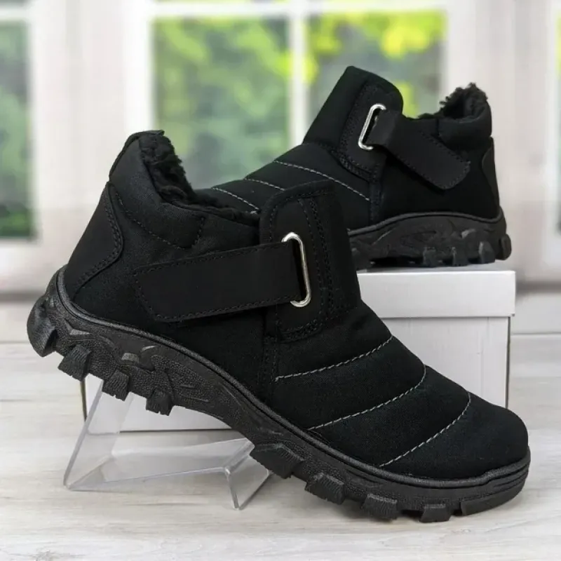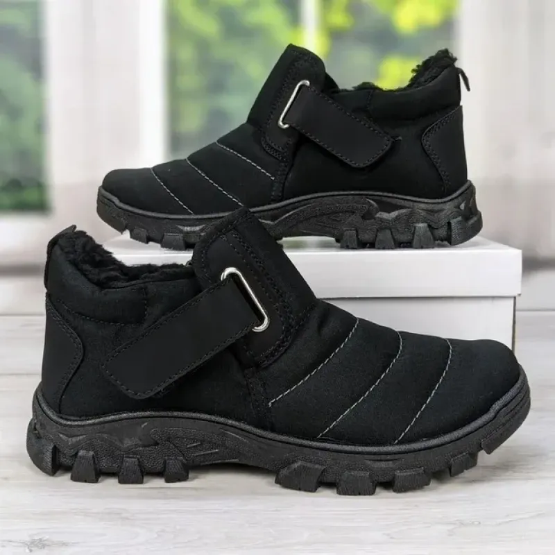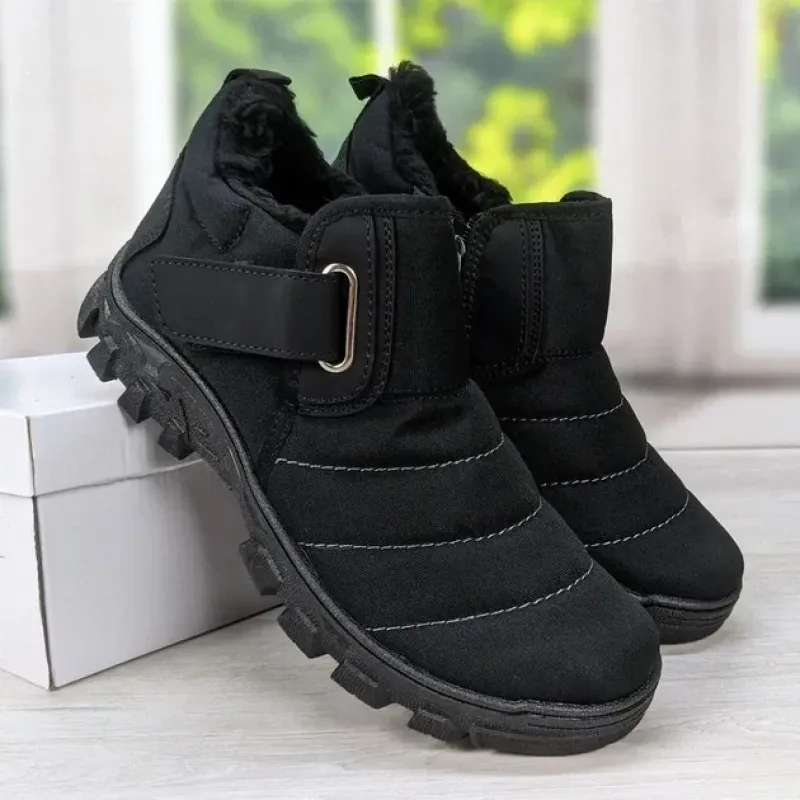 Зустрічайте холодну пору року у комфорті з нашими чоловічими зимовими черевиками-дутиками. Ця модель розроблена спеціально для тих, хто цінує тепло, практичність та зручність. Верх виготовлений з міцного водовідштовхувального текстилю, який надійно захищає від вітру, снігу та вологи, зберігаючи ноги сухими за будь-якої погоди. Всередині черевики утеплені густим штучним хутром, що забезпечує відмінну терморегуляцію навіть у сильні морози. Особливістю моделі є комбінована застібка: зручна липучка дозволяє відрегулювати взуття під будь-який підйом стопи, а бічна блискавка значно прискорює процес взування. Це ідеальний вибір для чоловіків будь-якого віку, включаючи людей похилого віку, завдяки легкості та м'якості. Підошва виконана із зносостійкого матеріалу з глибоким протектором, що гарантує надійне зчеплення зі слизькою поверхнею та запобігає ковзанню. Чорний колір робить модель універсальною та невибагливою у догляді — достатньо просто протерти поверхню вологою губкою. Характеристики: Сезон: Зима / Холодна осінь Матеріал верху: Водовідштовхувальний текстиль (плащівка) Матеріал підкладки: Штучне хутро Застібка: Липучка + Блискавка Колір: Чорний Розміри: 40-46 Підошва: Протиковзка, рифлена
