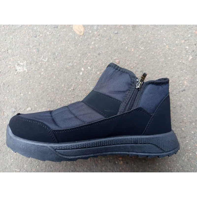 Зустрічайте новинку сезону — чоловічі зимові черевики Progress Winter! Це взірець практичності та комфорту для щоденного використання у холодну пору року. Модель розроблена з урахуванням потреб чоловіків, які шукають тепле взуття, що легко взувається та не тисне. Верх виготовлено з комбінації стьобаного водовідштовхувального текстилю (плащівка) та зміцнюючих вставок з еко-шкіри (нубука) по контуру, що захищає від промокання та зносу. Всередині черевики утеплені густим хутром, яке забезпечує надійну термоізоляцію. Головна фішка моделі — подвійна система застібки. З одного боку розташована надійна блискавка, а з іншого — широка липучка з логотипом бренду. Така конструкція дозволяє максимально розкрити черевик при взуванні, що ідеально підходить для людей з високим підйомом стопи. Підошва чорного кольору — гнучка, зносостійка та має протектор для захисту від ковзання. Характеристики: Бренд: Progress Сезон: Зима Матеріал верху: Текстиль + Еко-шкіра Матеріал підкладки: Штучне хутро Застібка: Блискавка + Липучка (Velcro) Підошва: ПВХ (прошита/лита) Колір: Чорний Розміри: 41, 42, 43, 44, 45