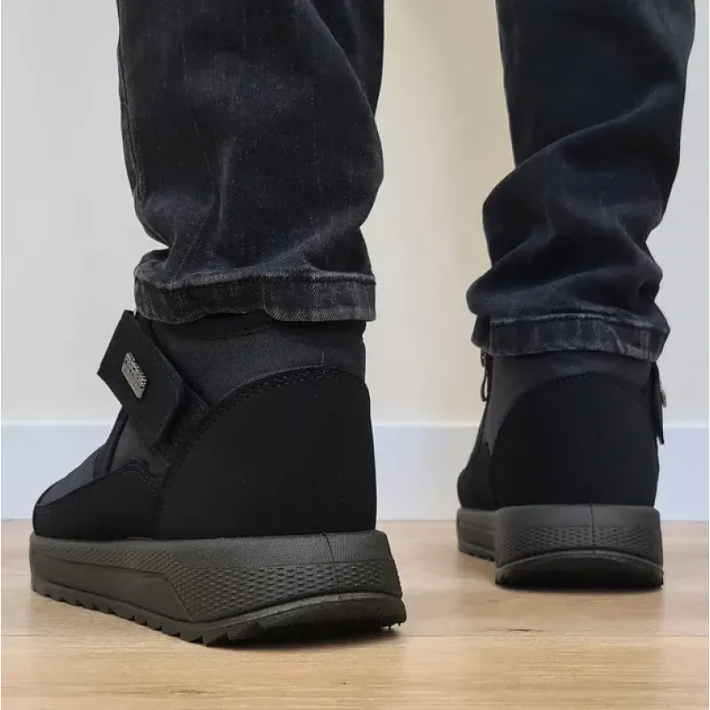 Зустрічайте зиму впевнено з новими чоловічими черевиками від бренду Progress. Ця модель — ідеальний вибір для тих, хто шукає баланс між спортивним стилем та міським комфортом. Особливості моделі: Практичний дизайн: Верх виконаний з комбінації стьобаного текстилю (плащівки) та щільних вставок з еко-нубуку по канту, що захищає взуття від вологи та сльоти. Зручна застібка: Модель оснащена бічною блискавкою для швидкого взування. Додатково спереду є широка липучка з металевим логотипом бренду, яка дозволяє відрегулювати щільність прилягання по нозі. Підошва: Висока чорна підошва забезпечує відмінну теплоізоляцію від холодної землі та має протектор для стійкості на слизьких поверхнях. Черевики легкі, м'які та дуже теплі. Універсальний чорний колір пасує під джинси, спортивні штани або штани-карго. Характеристики: Бренд: Progress Розміри: 41, 42, 43, 44, 45, 46 Колір: Чорний Матеріал верху: Текстиль + Еко-нубук Застібка: Блискавка + Липучка Сезон: Зима / Холодна осінь