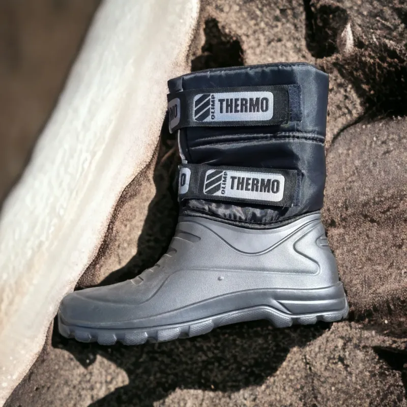 Надійні та теплі чоловічі чоботи-дутики "Olimp Thermo" — це найкраще рішення для мокрої та холодної зими. Ця модель поєднує в собі легкість матеріалу EVA та тепло зимового взуття. Нижня частина (калоша) відлита з сучасної піни, яка не пропускає вологу, не тріскається на морозі та важить у рази менше, ніж звичайна гума. Верх виготовлено з щільного водовідштовхувального текстилю, утепленого зсередини густим штучним хутром. Завдяки цьому ноги залишаються сухими та теплими навіть у сльоту чи глибокий сніг. Дві широкі липучки з логотипом "Thermo" дозволяють швидко взуватися та надійно фіксують чобіт на нозі, регулюючи об'єм халяви. Це взуття незамінне для зимової риболовлі, полювання, роботи на свіжому повітрі або просто для прогулянок у непогоду. Рельєфна підошва забезпечує стійкість на слизьких поверхнях. Характеристики: Тип взуття: Дутики / Сноубутси / Чоботи комбіновані Матеріал низу: Піна ЕВА (EVA) - 100% захист від води Матеріал верху: Водовідштовхувальний текстиль Утеплювач: Штучне хутро Застібка: Дві липучки Сезон: Зима / Холодна осінь Колір: Чорний Виробник: Україна (Olimp) Розміри: 41-46