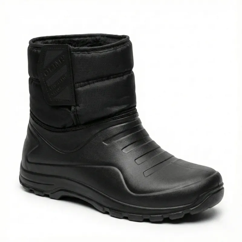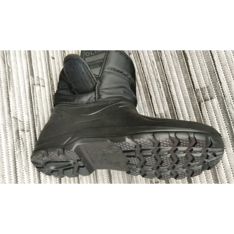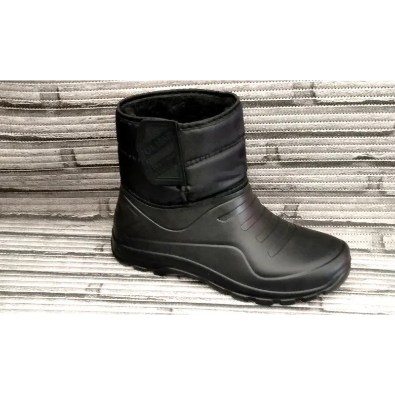 Міцні та надійні чоловічі зимові чоботи (сноубутси) від перевіреного бренду Olimp. Ця модель розроблена для експлуатації в найсуворіших погодних умовах: сніг, сльота, бруд та мороз. Основа чобота — суцільнолита калоша з матеріалу ЕВА, яка забезпечує 100% водонепроникність та відмінну термоізоляцію, захищаючи ноги від холодної землі. Верхня частина виготовлена з щільного водовідштовхувального текстилю. Головна перевага цієї моделі — широка та міцна застібка-липучка, яка дозволяє ідеально підігнати взуття по нозі (навіть з високим підйомом) та надійно фіксує халяву, не пропускаючи сніг всередину. Всередині чоботи повністю утеплені густим та теплим хутром. Підошва має агресивний глибокий протектор, що гарантує стійкість на слизьких поверхнях. Це ідеальний вибір для зимової риболовлі, полювання, роботи на господарстві або прогулянок по бездоріжжю. Характеристики: Бренд: Olimp (Україна). Матеріал низу: Піна ЕВА (легка, тепла, не промокає). Матеріал верху: Водовідштовхувальний текстиль. Утеплювач: Густе штучне хутро (по всій довжині). Застібка: Широка липучка (регулювання повноти). Колір: Чорний. Сезон: Зима. Розмірний ряд: 41-46 (повномірні).